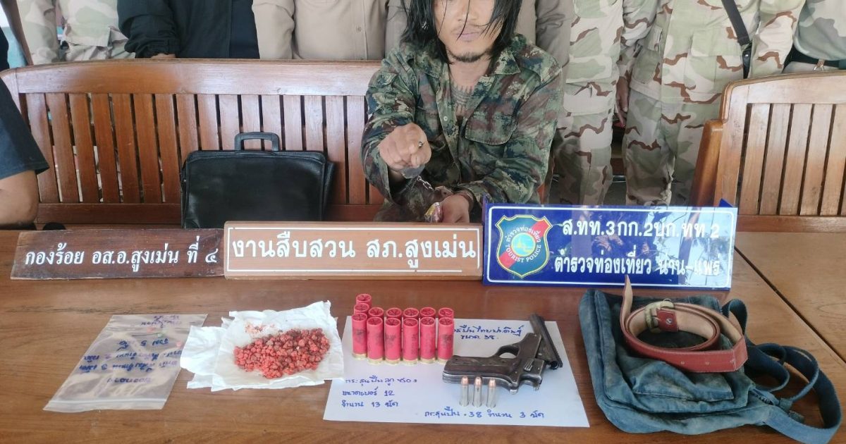 สถานที่จับ บริเวณหน้าบ้านเลขที่ 69/2 ม.1 ต.ร่องกาศ อ.สูงเม่น จ.แพร่